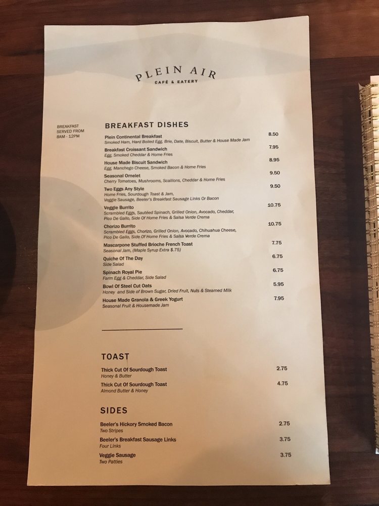 Welcome to Plein Air Cafe & Eatery, a cozy gem nestled on the UChicago campus, where comfort food meets a vibrant atmosphere. The menu provides a delightful range of offerings that cater to every palate, from hearty breakfast options like the 2 Eggs Any Style Breakfast to indulgent pastries such as the Almond Croissant and Pistachio Danish. Health-conscious diners will appreciate the range of vegan and vegetarian selections available.